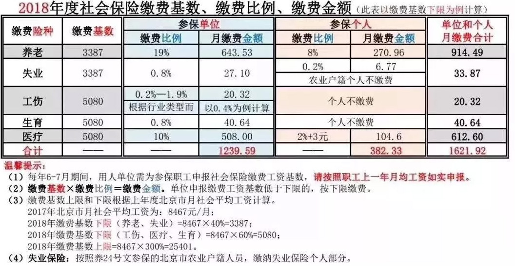 以北京為例,2017年北京職工月平均工資8467元/月,不考慮工資變動(dòng),一名女性22歲畢業(yè)開始工作,55周歲退休(此處我們忽略延遲退休這事) 【個(gè)人】社保與公積金繳費(fèi)總額 8467× 10.2%+3(社保)+8467×12%(公積金)=個(gè)人繳費(fèi)合計(jì):1882.67元 需繳納個(gè)稅:203.73元 【單位】社保與公積金繳費(fèi)總額 8467× 31%(社保)+8467×12%(公積金)=單位繳費(fèi)合計(jì):3640.81元 (工傷費(fèi)率按行業(yè)類別及工傷事故發(fā)生率等因素實(shí)行浮動(dòng)費(fèi)率) 個(gè)人每個(gè)月需要繳納的五險(xiǎn)一金+個(gè)稅是1882.67(五險(xiǎn)一金)+203.73(個(gè)稅)=2086.4元 1年要繳納這么多: 2086.4×12=25036.8元 33年要繳納這么多: 25036.8×33≈83萬 才83萬,在北京是不是連買個(gè)房都只夠交個(gè)首付? NoNoNo,以上只是職工個(gè)人繳納部分,企業(yè)繳納的還沒算進(jìn)去呢? 企業(yè)1年要繳納這么多: 3640.81×12=43689.72元 企業(yè)33年要繳納這么多: 43689.72×33≈144萬 個(gè)人+單位合計(jì):83+144=227萬 也就是說我們工作大半輩子,社保公積金和個(gè)人所得稅就要繳納227萬多。 我們到養(yǎng)老時(shí)可以取出來多少錢? 【公積金提取】 公積金可用于買房或全額提取,一共可以提取:8467 × 24% × 12 × 33 = ≈80萬元 【養(yǎng)老保險(xiǎn)領(lǐng)取】 退休時(shí)每月能領(lǐng)取的養(yǎng)老金數(shù)額是: 每月領(lǐng)取總額即基本養(yǎng)老金= 基礎(chǔ)養(yǎng)老金 + 個(gè)人賬戶養(yǎng)老金 + 過渡性養(yǎng)老金 從目前大家每月能夠領(lǐng)取的個(gè)人賬戶中養(yǎng)老金的標(biāo)準(zhǔn)來看,根據(jù)退休年齡的不同,“計(jì)發(fā)月數(shù)”也不一樣,到55歲退休是按照170個(gè)計(jì)發(fā)月數(shù)來算。