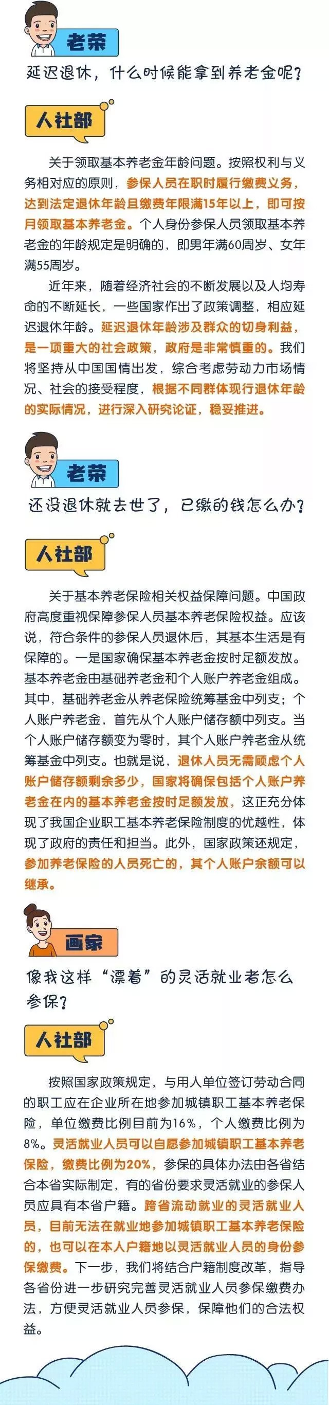 今日人社部針對(duì)大家關(guān)心的社保相關(guān)問(wèn)題有了最新統(tǒng)一的回復(fù),包括養(yǎng)老金能領(lǐng)多少?異地參保怎么辦?靈活就業(yè)者怎么參保等等問(wèn)題,通過(guò)下面一張圖仁本帶你好好了解!