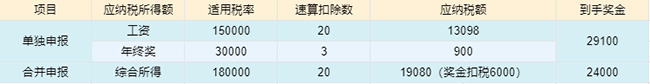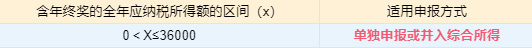 年終獎選擇并入綜合所得更節稅。 (2)當年收入(含年終獎)減去6萬及三險一金、附加扣除等后應納稅所得額≤36000