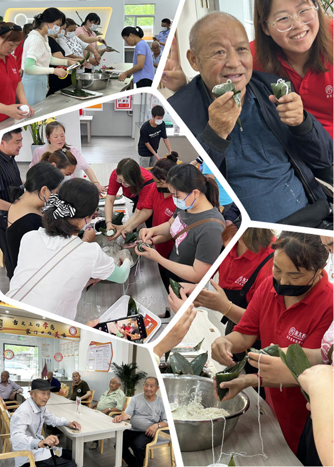 在活動現場,小伙伴們還陪著養老中心的老人們一起包粽子,過端午,話家常,詳細詢問老人的生活身體狀況,并將提前準備好的節日禮盒親手送到每一位老人的手中,整個現場歡聲笑語,其樂融融。