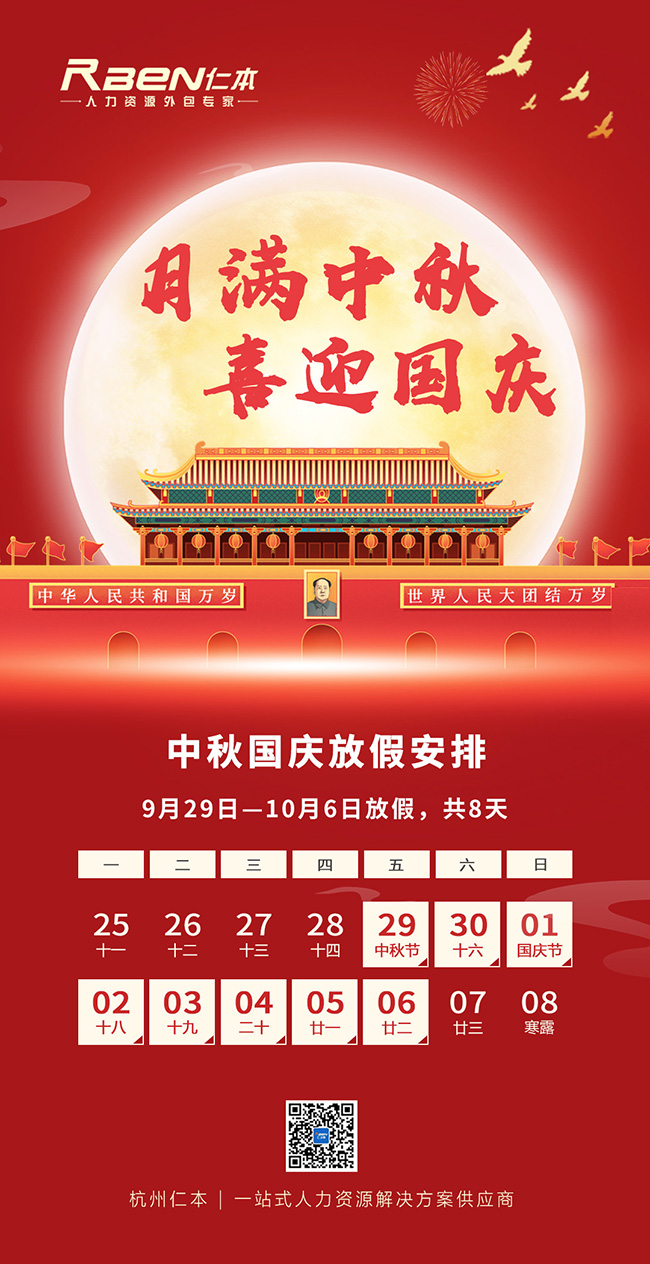 杭州仁本2023年中秋國慶放假通知: