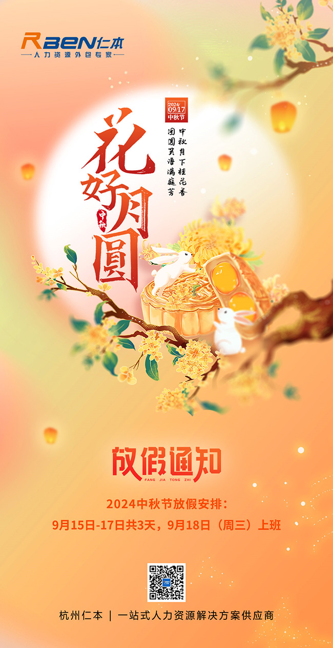 杭州仁本2024年中秋節放假通知: