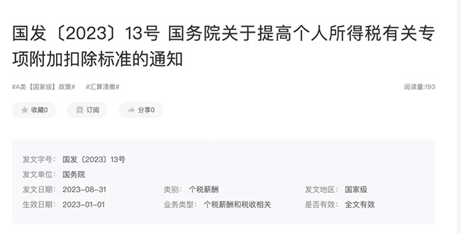 其中明確指出: 強化生育服務支持 …… (三)建立生育補貼等制度。制定生育補貼制度實施方案和管理規范,指導地方做好政策銜接,積極穩妥抓好落實。落實好3歲以下嬰幼兒照護、子女教育個人所得稅專項附加扣除政策。加大個人所得稅抵扣力度。 事實上,早在2023年8月31日,國務院就曾發布《關于提高個人所得稅有關專項附加扣除標準的通知》,就“提高3歲以下嬰幼兒照護等三項個人所得稅專項附加扣除標準”作出明確規定: