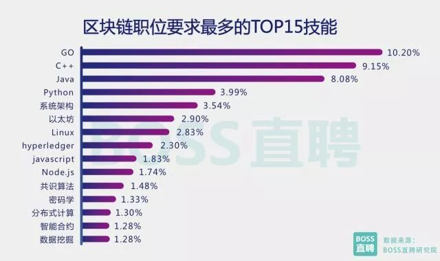 由于區塊鏈技術開發并不需要掌握某種新的技術,其核心是將現有技術應用到新的邏輯架構中,去實現新 功能。 通過對大量職位描述的分析,發現,出色的區塊鏈技術人才招募難,并非源于高技術門檻,而是同 時擁有扎實技術基礎、區塊鏈(去中心化)思維方式和實際應用經驗的人才存量太小。一個擁有10年經驗的高級技術專家,并不代表其擁有相應的區塊鏈開發經驗。 5、對2018年區塊鏈相關人才趨勢的一些初步判斷 由于區塊鏈相關人才嚴重稀缺,未來一段時間內,搶人大戰還將持續,薪資也將持續增長,甚至出現類似 2014、2015年移動互聯網激戰時期的薪資泡沫。 目前除巨頭紛紛涉足區塊鏈業務之外,行業中存在大量初創企 業。眼下區塊鏈成為最大風口,融資難度不大,初創企業的日子過得還可以。 但除了在金融服務和游戲領域有 一些場景,區塊鏈技術目前還沒有真正扎實的落地應用,依然處在早期探索階段,幣圈的亂局便是這個混沌階 段的表征之一,再加上監管政策的不確定性,早期區塊鏈企業面臨多重外部風險。 2018年,我們大概率能夠看到的是,擁有前文提及技能的工程師會出現一波顯著流動,在公司內部和外部兼有。隨著格局的逐漸清晰,可能還會出現一批人才回流。 在區塊鏈成為大熱風口之后,有聲音認為,這可能會影響人工智能行業對人才的吸引力,造成人才向區塊 鏈領域流動。 BOSS直聘研究院觀察發現,目前通過轉崗從事區塊鏈相關職位的人才,幾乎全部為從事基礎開發 或數據挖掘的工程師。截止到2018年2月底,我們沒有觀察到AI領域人才轉向區塊鏈行業的趨勢,AI領域仍然是 大部分資深技術人才轉崗的首選目標。 4 人才的崗位間流動 高新技術崗位人才嚴重緊缺 基礎重復類崗位人才過剩恐被替代 2018年旺季,隨著自動化和人工智能技術在各行業中的逐步應用,一批以簡單重復性工作為主的崗位人才 供應出現過剩情況,以校對錄入、柜員、會展活動執行、物流跟單等為代表的崗位,人才過剩程度較去年同期進一步拉大。 高新技術類崗位由于對求職者技術能力及學歷要求較高,人才存量十分有限,呈現嚴重緊缺狀態。在人才最為緊缺的前十個職位中,時下最火的大數據、人工智能、算法類崗位占據半壁江山。