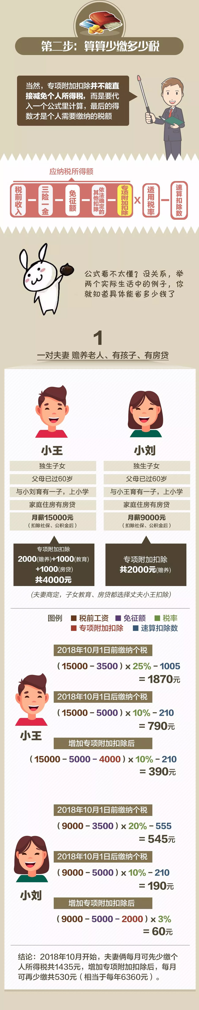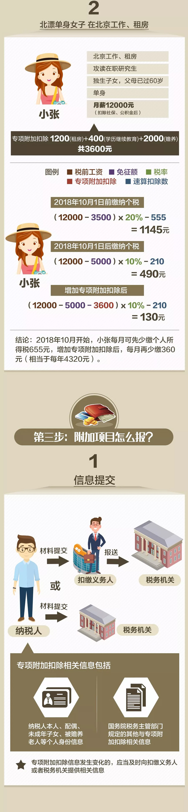 10月20日)起,財政部、國家稅務總局會同有關部門起草的《個人所得稅專項附加扣除暫行辦法(征求意見稿)》(以下簡稱《暫行辦法》)在兩部門官網(wǎng)向全社會公開征求意見,之后,將依法于2019年1月1日起實施。 《暫行辦法》明確了個人所得稅法規(guī)定的子女教育、繼續(xù)教育等6項專項附加扣除的具體實施辦法。享受這些專項附加扣除,需要哪些條件?通過這些扣除項目,納稅人可以少繳多少個稅?跟隨下面這張圖,一起來算算。