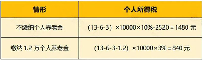 綜上,小A繳納12000元的個人養老金,可以節省個稅360元。 因此,對于不影響稅率的情況下,可以節省的個人所得稅額=當年實際繳納的個人養老金×個人綜合所得對應稅率。 而對于影響稅率的情況下,其節稅效果就更加明顯了,比如: 假設小A2024年年收入130000元,可以扣除的三險一金及專項附加扣除為3萬。則對于小A來說: