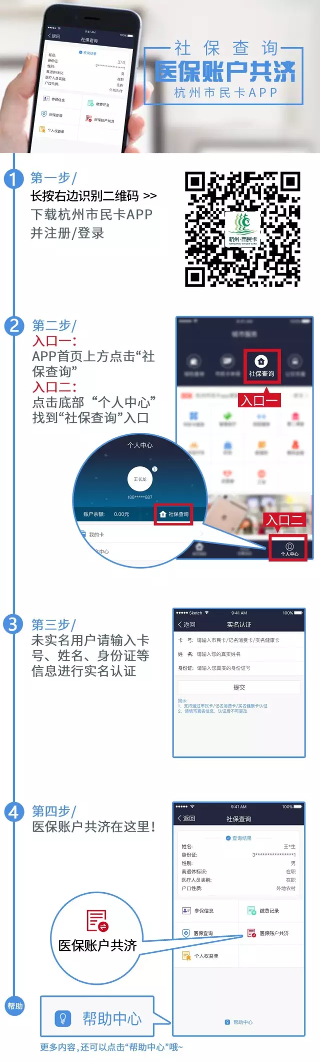“個人權益單”包括本年度每月繳費情況及年度權益信息,具體自己點進去看哦~ PS:當年的個人權益單于次年生成,當年只能查詢歷年的個人權益單。 Q & A 哪些人可以在市民卡APP上查詢到社保信息? 小編:杭州市區(除蕭山、余杭、富陽)社會保險參保人員可查詢,目前僅支持查詢本人社保信息。 滿足什么條件才可以使用醫保賬戶共濟功能? 小編:目前醫保共濟實施地區包括杭州市區(三區四縣市用戶敬請期待)。醫保賬戶共濟的轉出人必須是職工醫保,且必須當前醫療待遇正常;轉入人除了離休干部,其他類別參保用戶只要滿足當前醫療待遇正常,均可以被共濟轉入。 醫保歷年余額怎么使用? 小編:醫保個人賬戶當年結余部分,按規定計息后轉為歷年賬戶資金,可用于支付符合醫保開支范圍,按規定應由個人承擔的普通門診、規定病種門診和住院醫療費。 此外,3月1日起,歷年賬戶的使?范圍進?步的擴大。具體使用范圍請點擊:杭州市民卡APP - 社保查詢 - 醫保賬戶共濟 - 幫助中心 - 歷年賬戶怎么用。其他關于醫保賬戶共濟的問題,也可以在幫助中心得到解答哦~ |