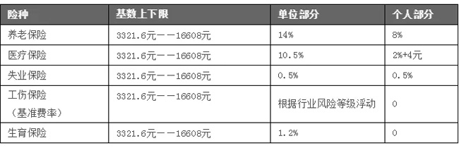 01、社保繳費基數(shù)上下限基本確定 此前,國務院決定調(diào)低社保繳費基數(shù)標準,即各地由過去依據(jù)城鎮(zhèn)非私營單位在崗職工平均工資,改為以本省城鎮(zhèn)非私營單位和私營單位加權(quán)計算的全口徑就業(yè)人員平均工資,核定繳費基數(shù)上下限,使繳費基數(shù)降低。 仁本小編了解到,浙江省在崗職工平均工資統(tǒng)計口徑,其實已按以上標準執(zhí)行。因此,杭州社保基數(shù)上下限的核定口徑預計不會改變。 杭州社保基數(shù)上下限的確定規(guī)則為:參保職工社會保險繳費基數(shù)下限為上年度全省職工月平均工資的60%,上限為上年度全省職工月平均工資的300%。因此,我們推測今年7月左右公布的杭州社保繳費基數(shù)上下限為3321.6元——16608元。而接下來杭州的企業(yè)社保基數(shù)比例可能將會調(diào)整為: