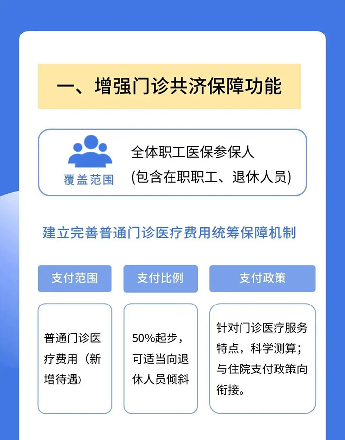 變化二:普通門診費用擬納入報銷 這個變化最直接的影響就是:可以報銷的費用變多了。 自1998年職工醫保制度改革以來,我國的基本醫保制度都是以保住院為核心,為住院提供比較高的待遇保障。 門診保障這塊,一直比較薄弱,目前只有北京、上海、深圳等一些經濟比較發達的城市可以報銷門診。 其他地方的門診費用主要依靠個人賬戶來支付,但是,大多數人的個人賬戶里并沒有太多錢。 這也導致很多病人去住院,其實就為了吃藥能報銷。 因此,這次《征求意見稿》就提出要新增一項醫保待遇:把一些門診常見病納入醫保統籌基金支付范圍,報銷比例最低50%。 這樣算下來,醫保待遇不僅沒有降低,而且是變得越來越好了!