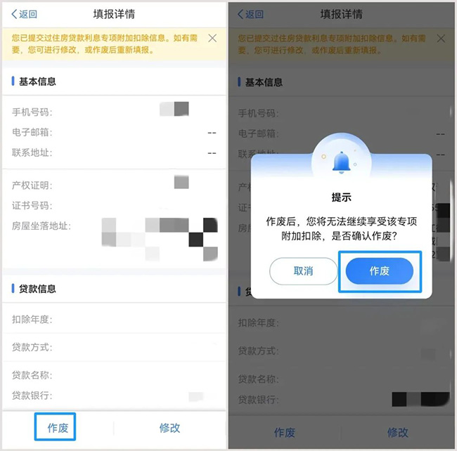 情形三:2024年需作廢專項(xiàng)附加扣除項(xiàng)目 1.點(diǎn)擊【專項(xiàng)附加扣除填報(bào)】,進(jìn)入填報(bào)頁(yè)面。【填報(bào)記錄】選擇【查詢年度2024年】。 2.點(diǎn)擊進(jìn)入想要作廢的專項(xiàng)附加扣除項(xiàng)目。點(diǎn)擊左下角【作廢】,確認(rèn)作廢后,即可作廢成功。